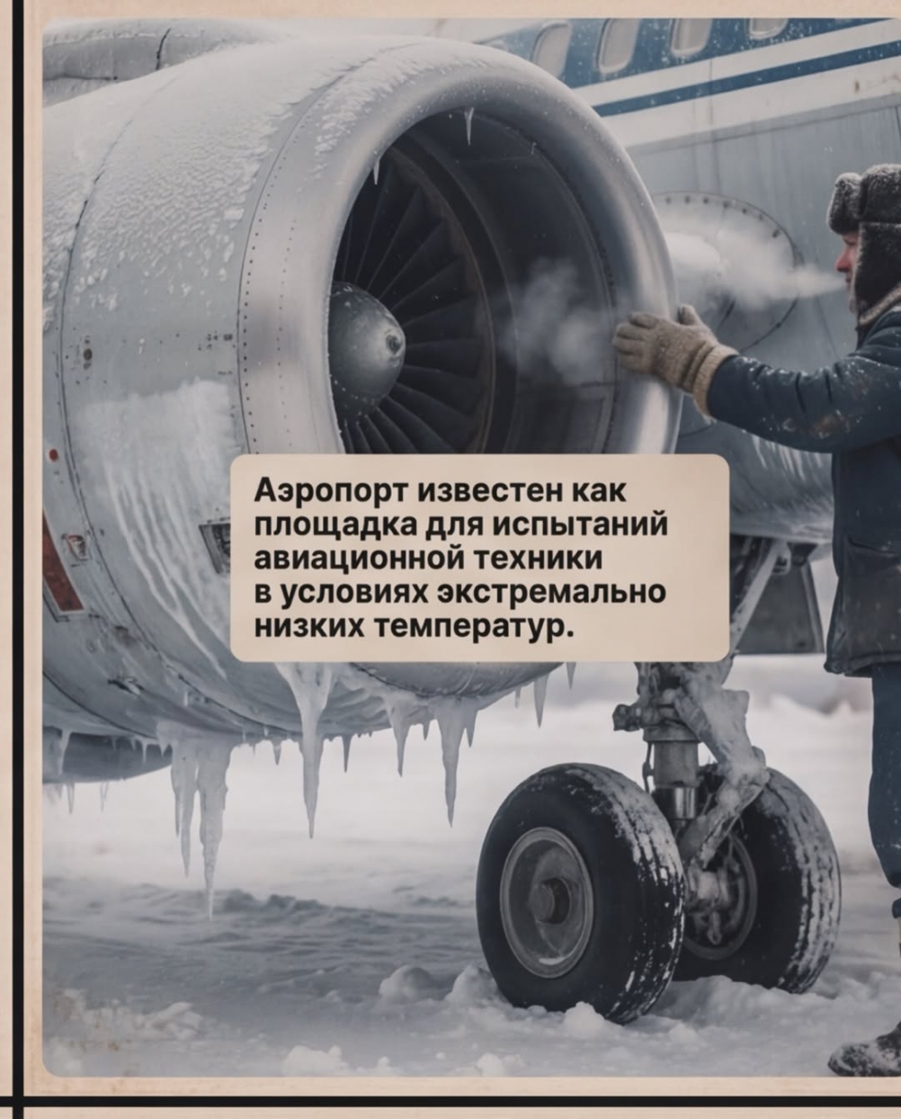 Аэропорт «Якутск» является единственным в мире аэропортом-полигоном для испытаний новой авиационной техники в условиях низких температур. «Якутск» — площадка, где авиационная техника и люди ежедневно проходят испытание температурой ниже -40 °C. Здесь отрабатывались полёты в суровых арктических условиях, а для жителей региона аэропорт давно стал жизненной артерией: доставка врачей, медикаментов, продуктов, вахтовых бригад, срочных грузов и, конечно, возможность просто вернуться домой.