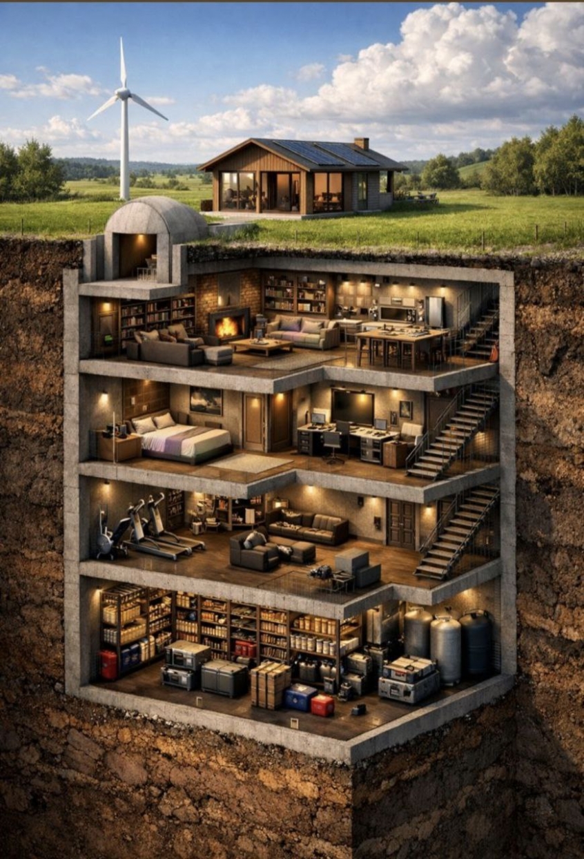 В нашем распоряжении нет точных архитектурных планов бункеров элиты, но в сети гуляют вот такие предложения для среднего класса.