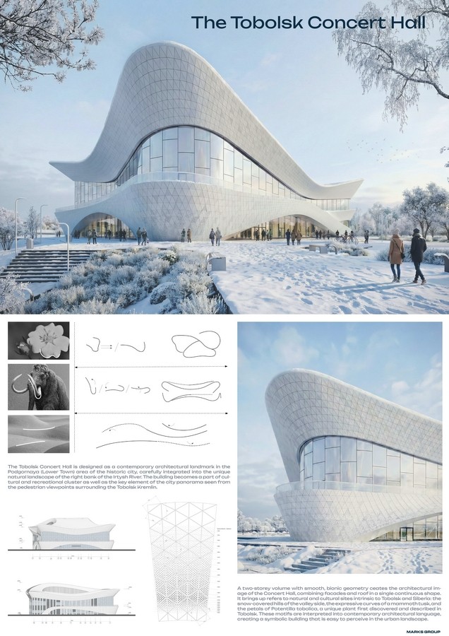 Источник изображений и информации: https://www.architecturepressrelease.com/gold-winner-concert-hall-in-tobolsk-marks-group/