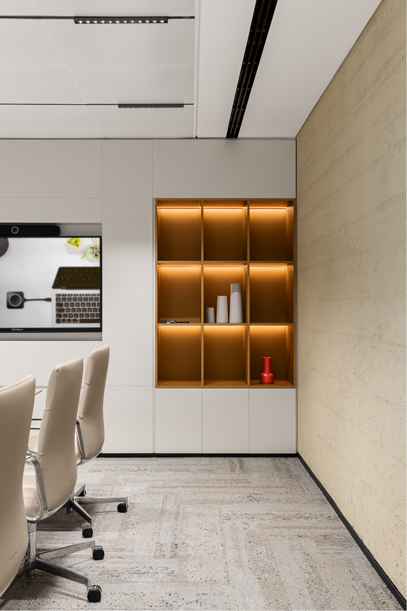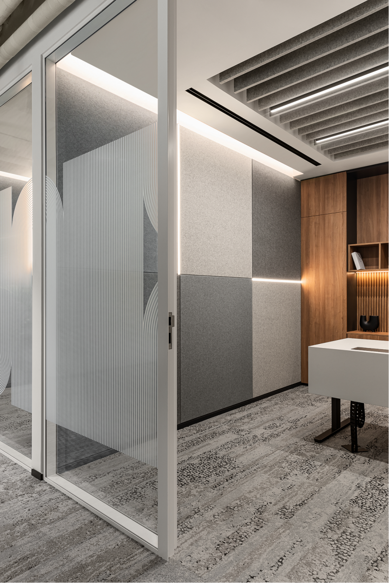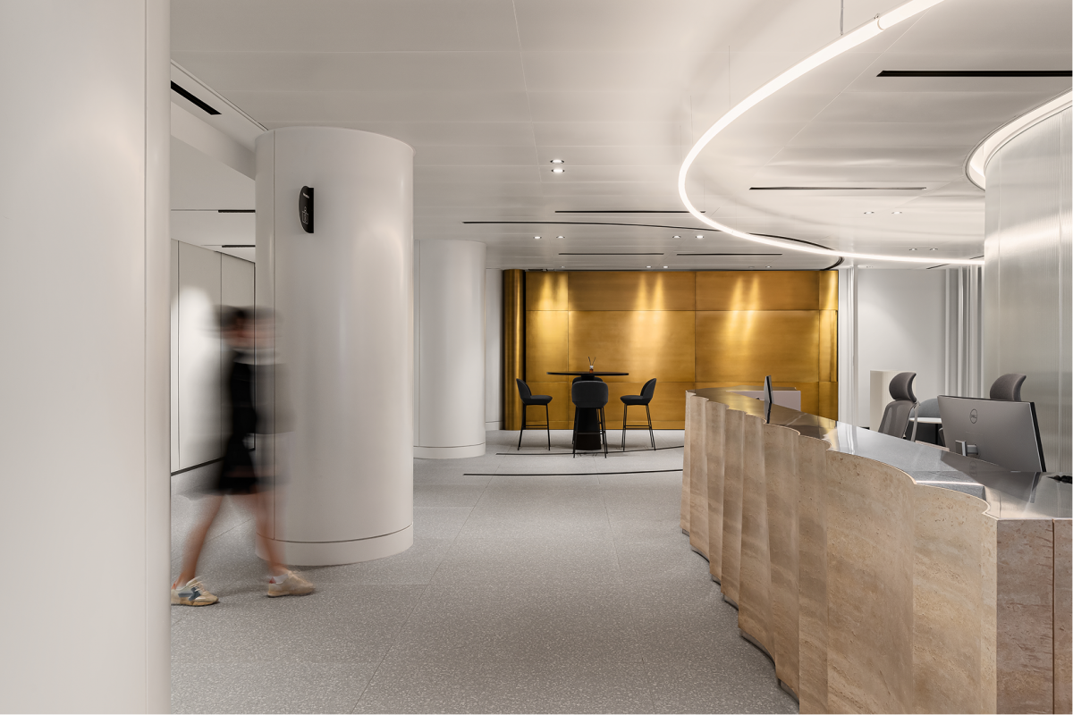 «Мы спроектировали современный и технологичный офис в Дубае, наполненный нетрадиционными решениями и скрытыми смыслами. В интерьере сочетаются функциональность и искусство, отражающие культуру Ближнего Востока и промышленный опыт нашей компании. В каждой зоне есть уникальные акценты и произведения искусства, которые отражают наши корпоративные ценности и местный контекст. Наш офис расположен на двух этажах современного бизнес-центра в Дубае. На каждом этаже есть все необходимые услуги, включая типографию, камеры хранения, телефонные будки, кафе и барную стойку».