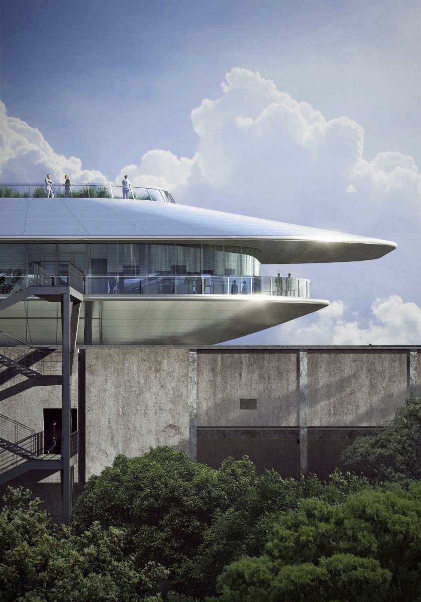 Перед главным архитектором проекта реновации Ма Яньсуна стояла непростая задача – одновременно сохранить конструктивное и историческое наследие. Так было решено, что стены бывшего склада останутся нетронутыми, но их дополнительно укрепят в местах износа. Для крыши спроектировали купол в форме космического «ковчега» как прообраз обновления и возрождения.