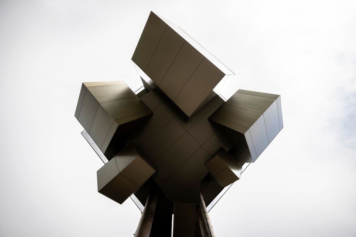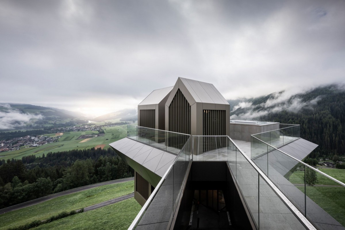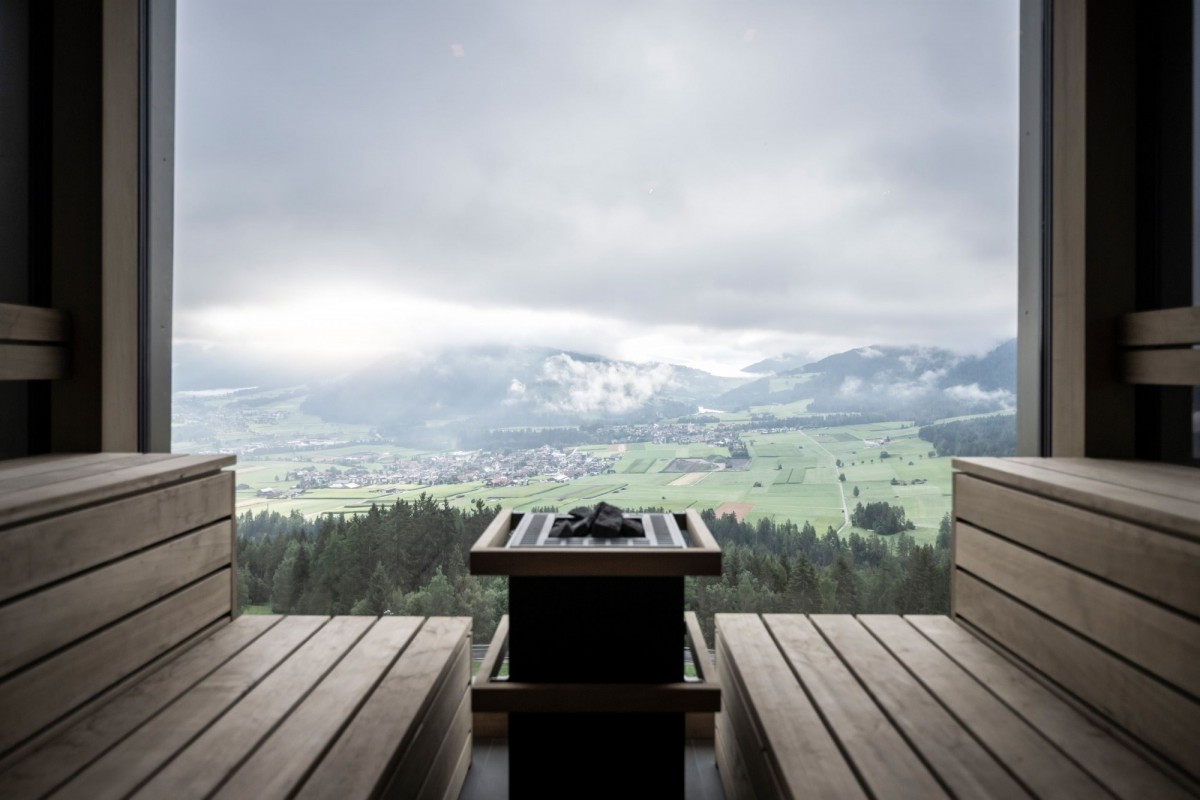 Wellness-зона для отеля Hubertus (Вальдаора, Италия), построенная по проекту архитектурного бюро noa*, представляет необычный взгляд на то, как может выглядеть СПА. Здание парит над землей на высоте 15 метров, опираясь на две колонны, обшитые лиственницей. «Эффект левитации» не главный концептуальный момент конструкции, зрителя удивляет другое — оздоровительный корпус расположен вверх ногами.