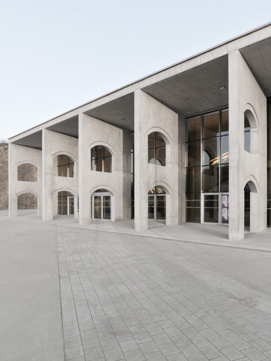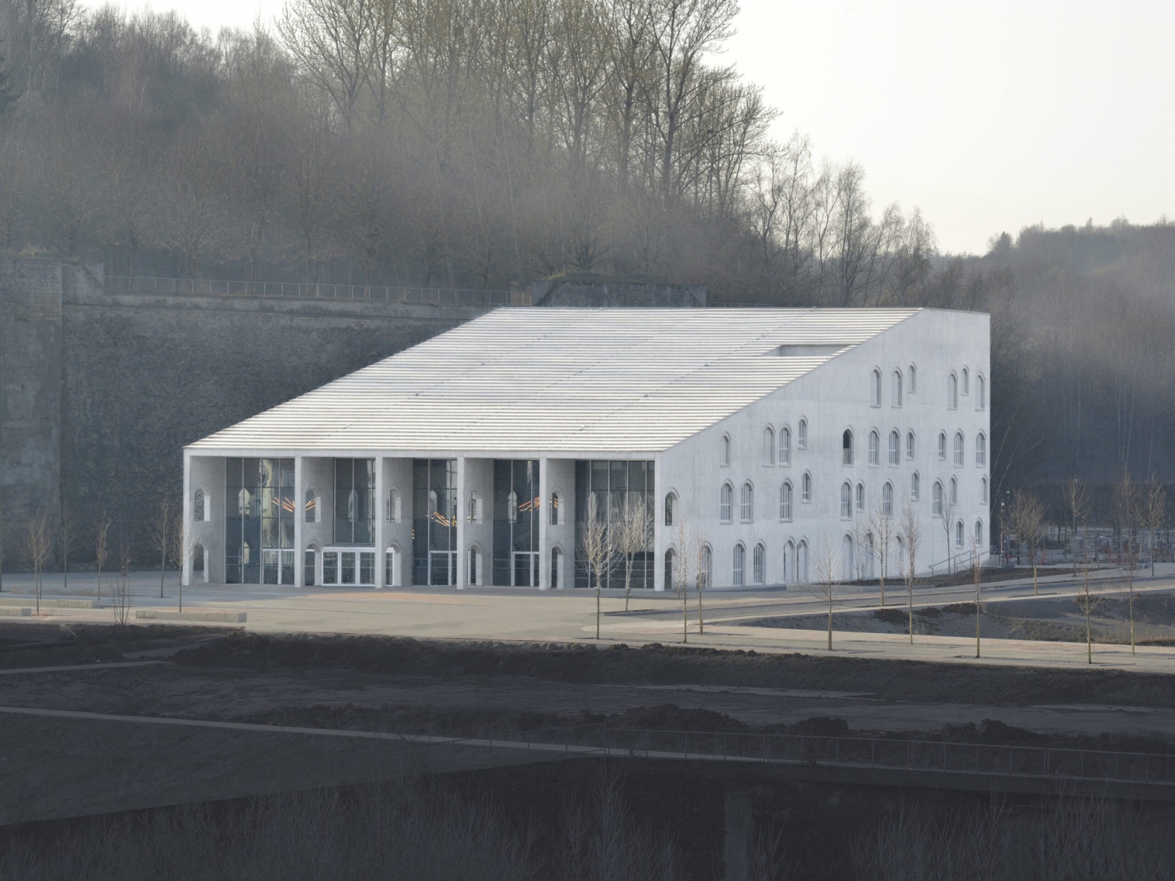 Новый центр располагается возле высокой каменной подпорной стены, оставшейся от платформы для погрузки руды. Фасад центра создает бесконечную игру с арками, как дань уважения итальянской культуре через отсылки к стенам Колизея, а скошенная кровля копирует знаменитую лестницу виллы Малапарте.