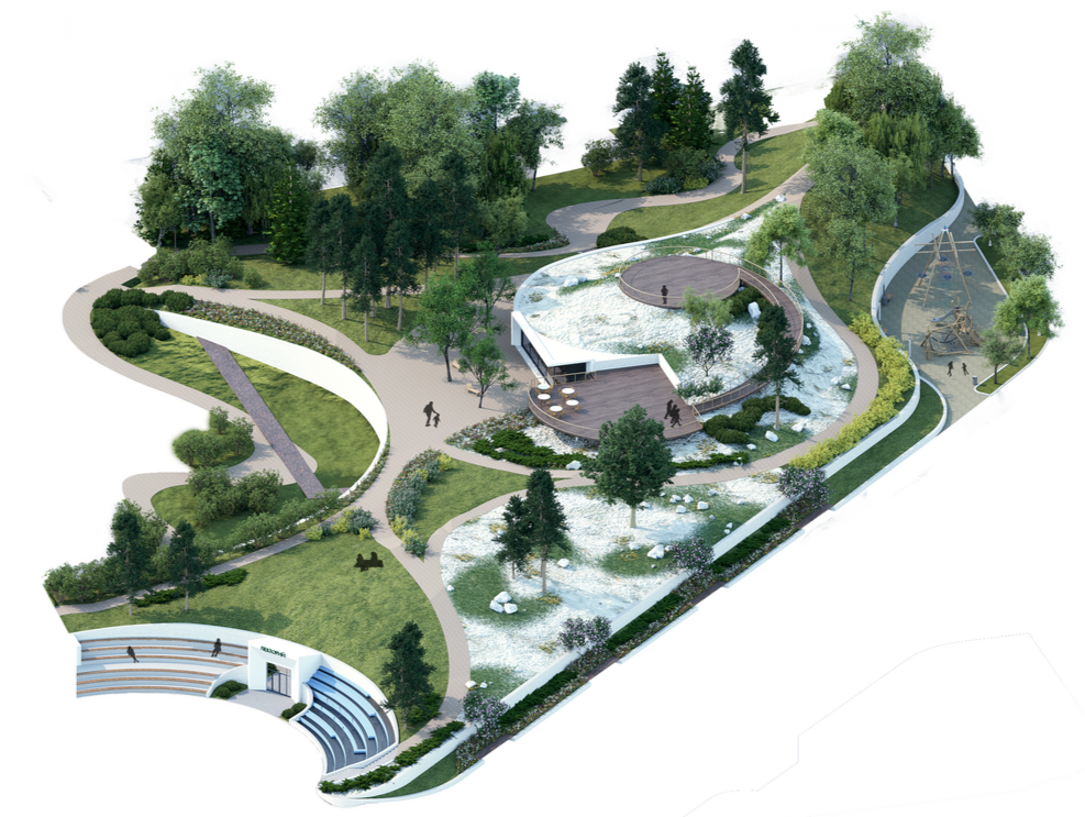 Ключевыми объектами станут «Меловая гора» и концертный зал, вместимость которого выросла с 500 до 700 посадочных мест. На «Меловой горе» появится водоём в виде реки, ниспадающей в водопад.