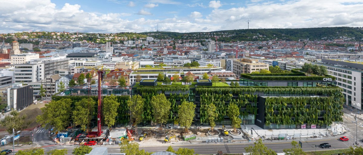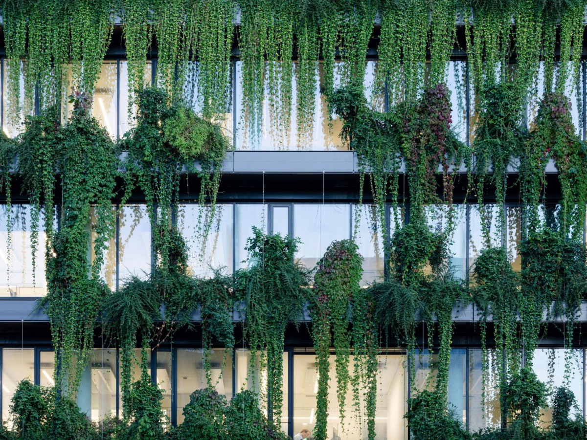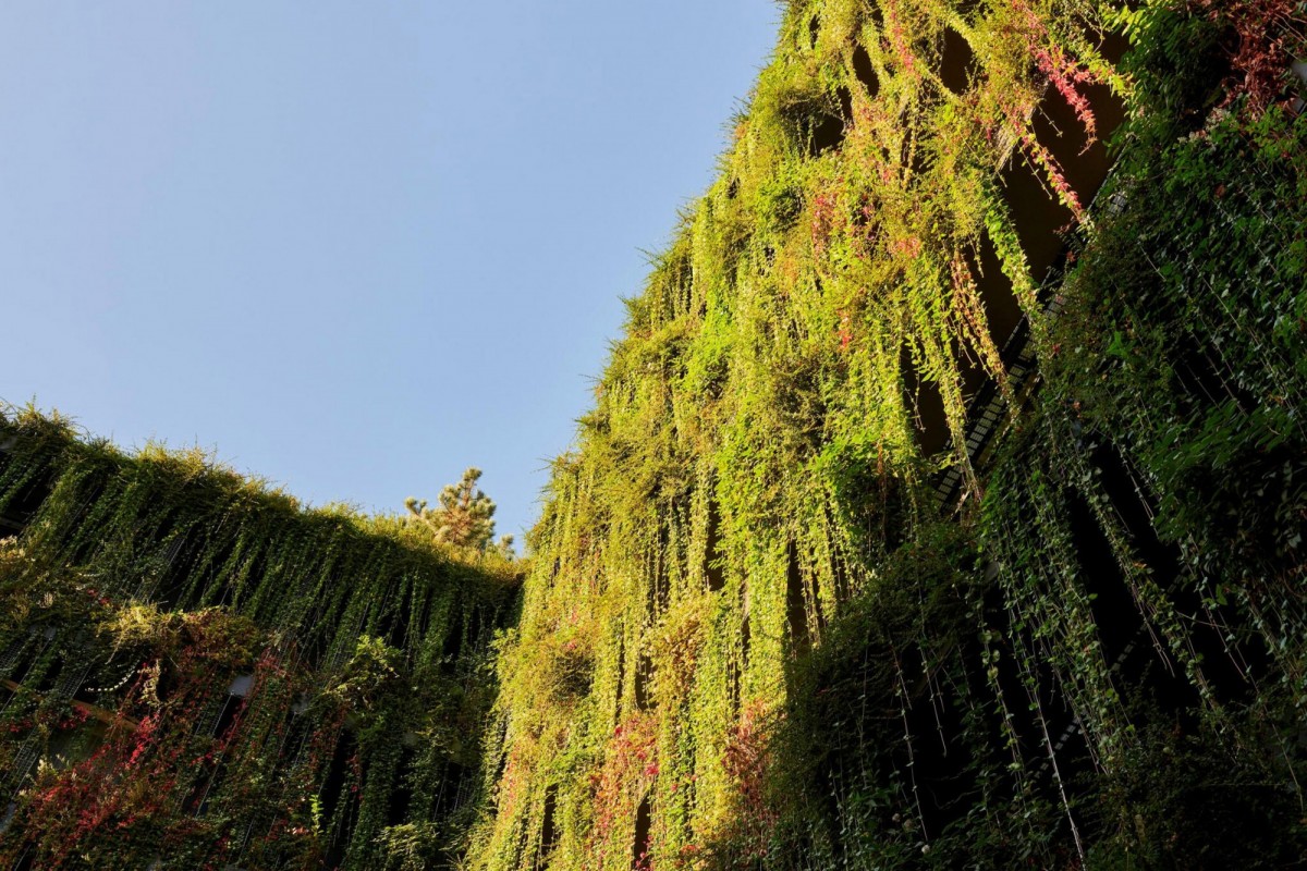 Немецкая студия Ingenhoven Associates обновила фасад бывшего торгового центра и офисного блока Calwer Passage в Штутгарте, обустроив на нем «естественный занавес» из вьющихся растений. Также в рамках реновации к зданию были добавлены шесть дополнительных этажей, где разместились офисы и квартиры. На крыше появилась зеленая терраса, засаженная деревьями.